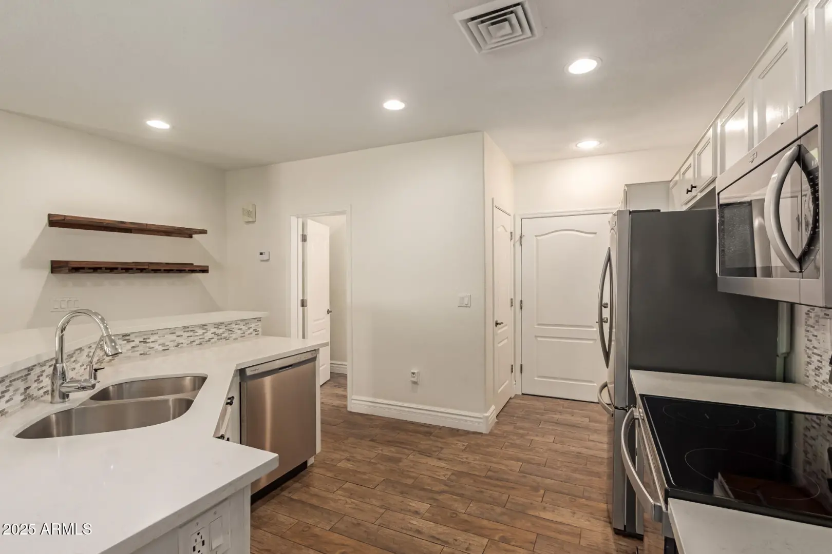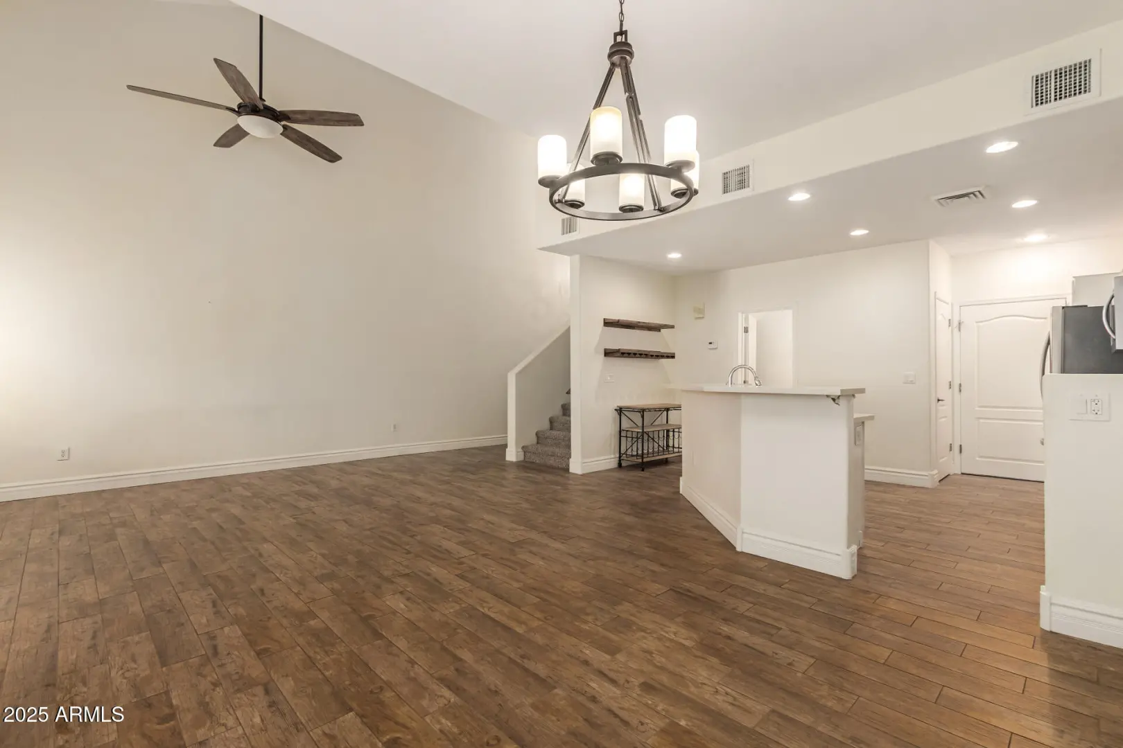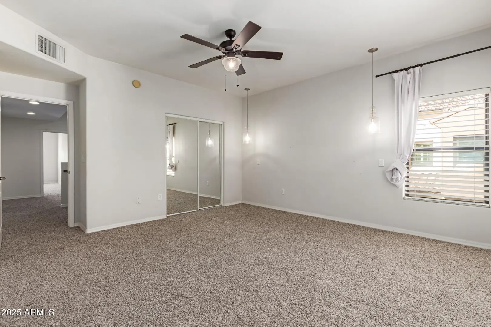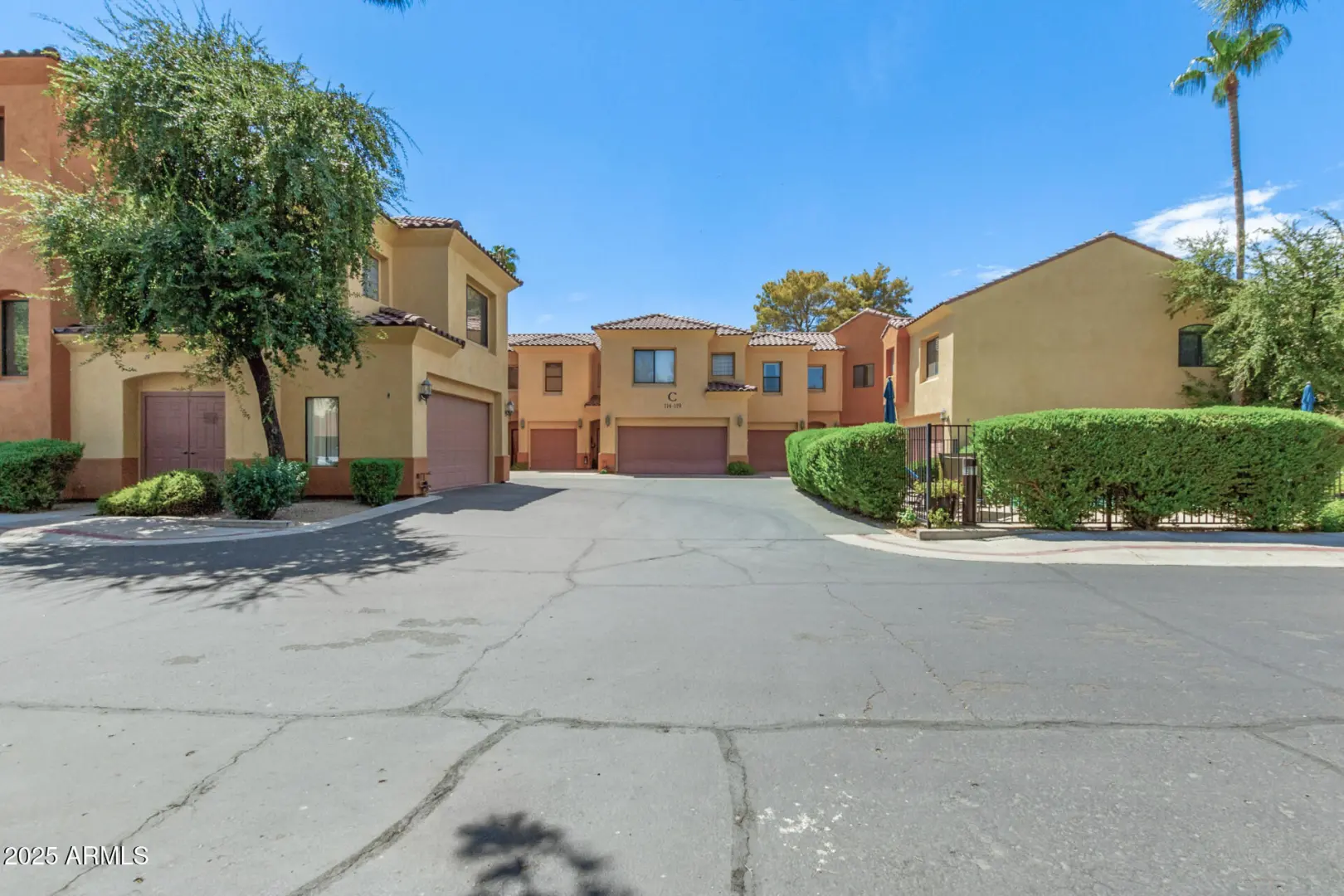 This townhome is in a beautiful, quiet gated community in the heart of north central Phoenix. The complex boasts tree lined streets, ample parking for guests, a grass area to take your dogs or animals, a community pool and hot tub. This 2 bedroom 2.5 bathroom 1550 square foot townhome was built in 2000, and everything appliance wise has been upgraded since 2023, refrigerator, dishwasher, microwave, washer dryer, and Air conditioning unit, and brand new carpet just installed It's rare to find a townhome at this price that has a 2 car attached garage and a private backyard The downstairs level has a 20 foot + ceiling with a 2nd story that features a loft, a laundry room, and two bedrooms with en suite bathrooms. The bathrooms are original but everything else has been upgraded!