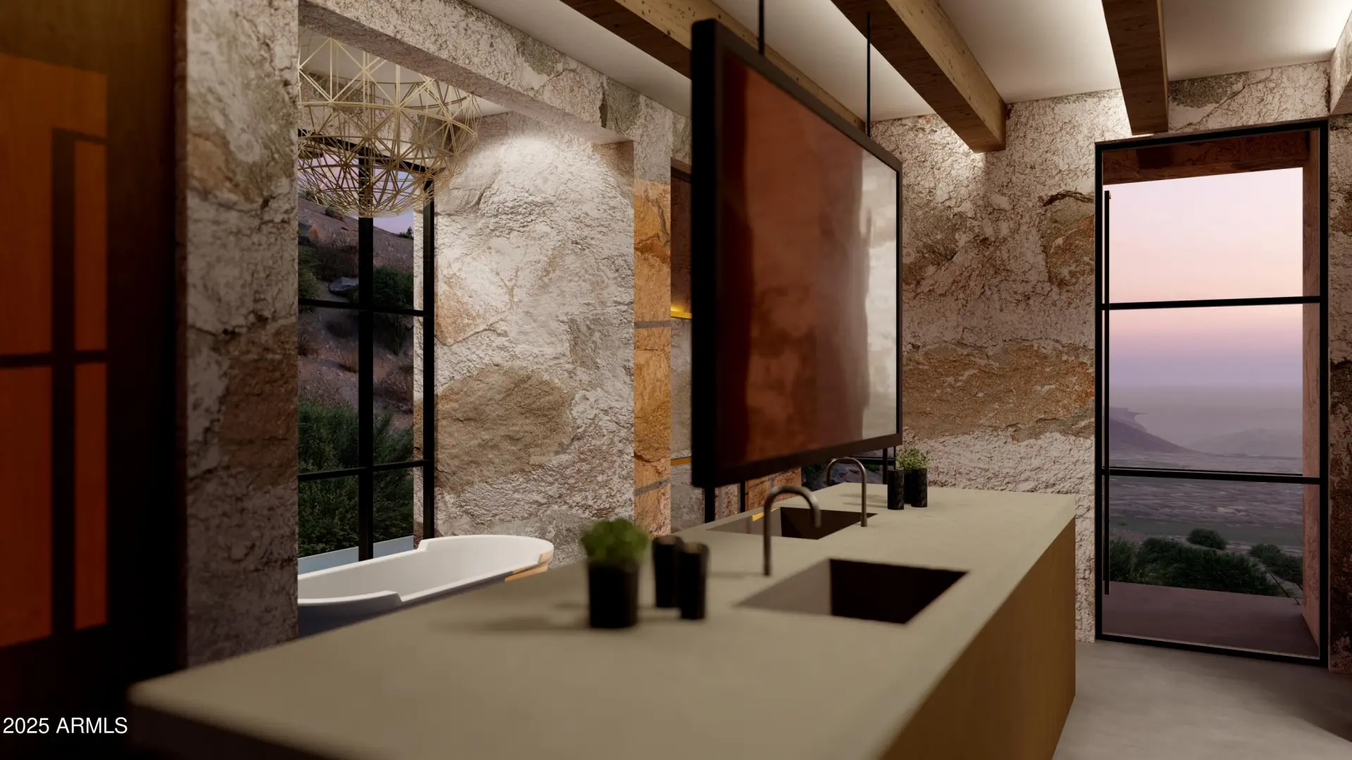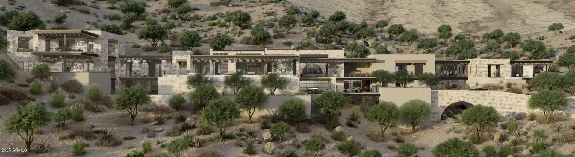 Nestled in the prestigious Silverleaf community, Lot 1491 is an extraordinary estate spanning over 30 acres of pristine desert landscape, offering unmatched luxury, privacy, and scale. This architectural masterpiece boasts 31,983 square feet of livable space and 47,604 square feet under roof, designed for elevated living and grand entertaining. The property features a quarter-mile-long driveway of colored exposed concrete aggregate with decorative concrete banding, leading to a residence with five bedrooms and eleven bathrooms, including a primary suite, junior primary suite, three guest bedrooms, and a detached guest casita. The estate includes a main-level office and an upper-level office with a lounge and bar, complemented by over 5,000 square feet of climate-controlled garage space.
