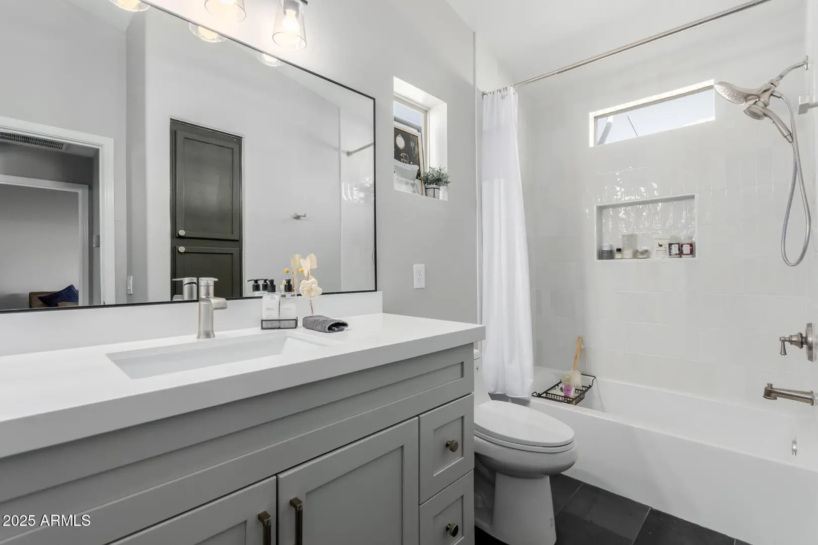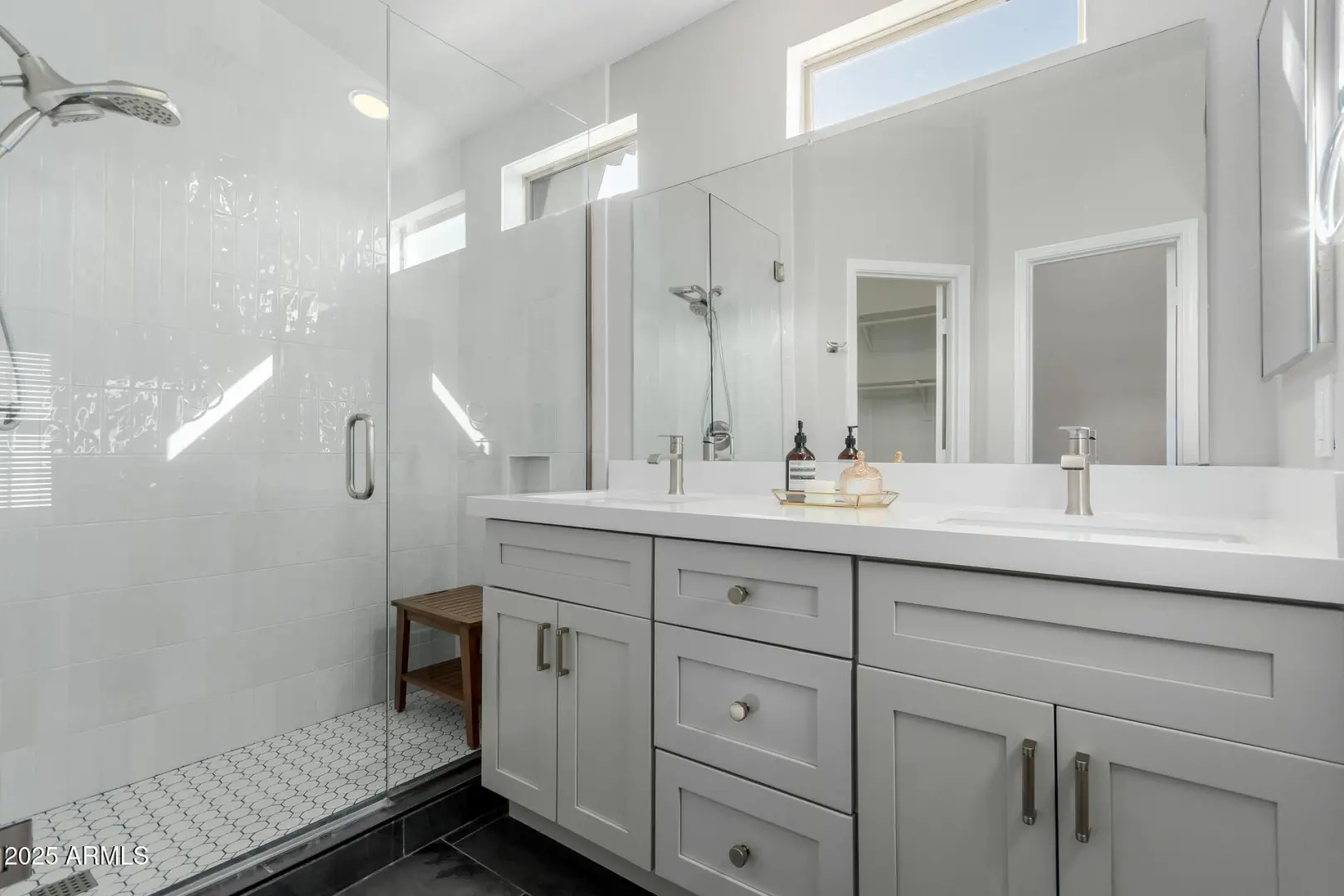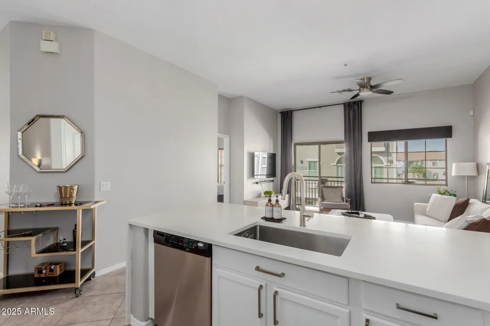 This beautifully updated 2-bedroom, 2-bathroom corner unit offers the perfect blend of comfort, privacy, and convenience. The split floor plan ensures minimal shared walls between bedrooms, while large windows fill the home with natural light throughout the day. The remodeled kitchen sets the tone with a lowered pony wall featuring a waterfall quartz countertop, complemented by a new backsplash, updated hardware, and modern finishes. Fresh interior paint, new lighting and ceiling fans, and custom window treatments enhance the contemporary feel. Both bathrooms are fully renovated with quartz vanities, updated cabinetry, new flooring, modern lighting, and tiled showers, including a frameless glass enclosure in the primary suite. Additional upgrades include a brand-new washer, refreshed