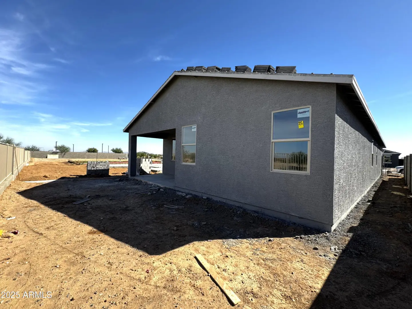 Discover the stunning new Poppy floor plan in Amarillo Creek, offering 2,071 sq. ft., 4 bedrooms, 3 baths, a 2-car garage, and a spacious den. The stylish kitchen shines with the Minimalist Collection: 42'' gray shaker cabinets, white countertops, white tile backsplash, and a large island—perfect for entertaining. Includes stainless steel appliances, washer, dryer, and blinds. Enjoy designer touches like wood-plank tile, plush carpet, and 9-ft ceilings. The open layout and sliding glass door connect to a covered patio for ideal Arizona indoor-outdoor living, and enjoy the beautiful view. The primary suite features dual sinks and a walk-in closet. Amarillo Creek offers mountain views, parks, pickleball, and basketball courts, with easy access to Route 347 and Maricopa's top amenities.