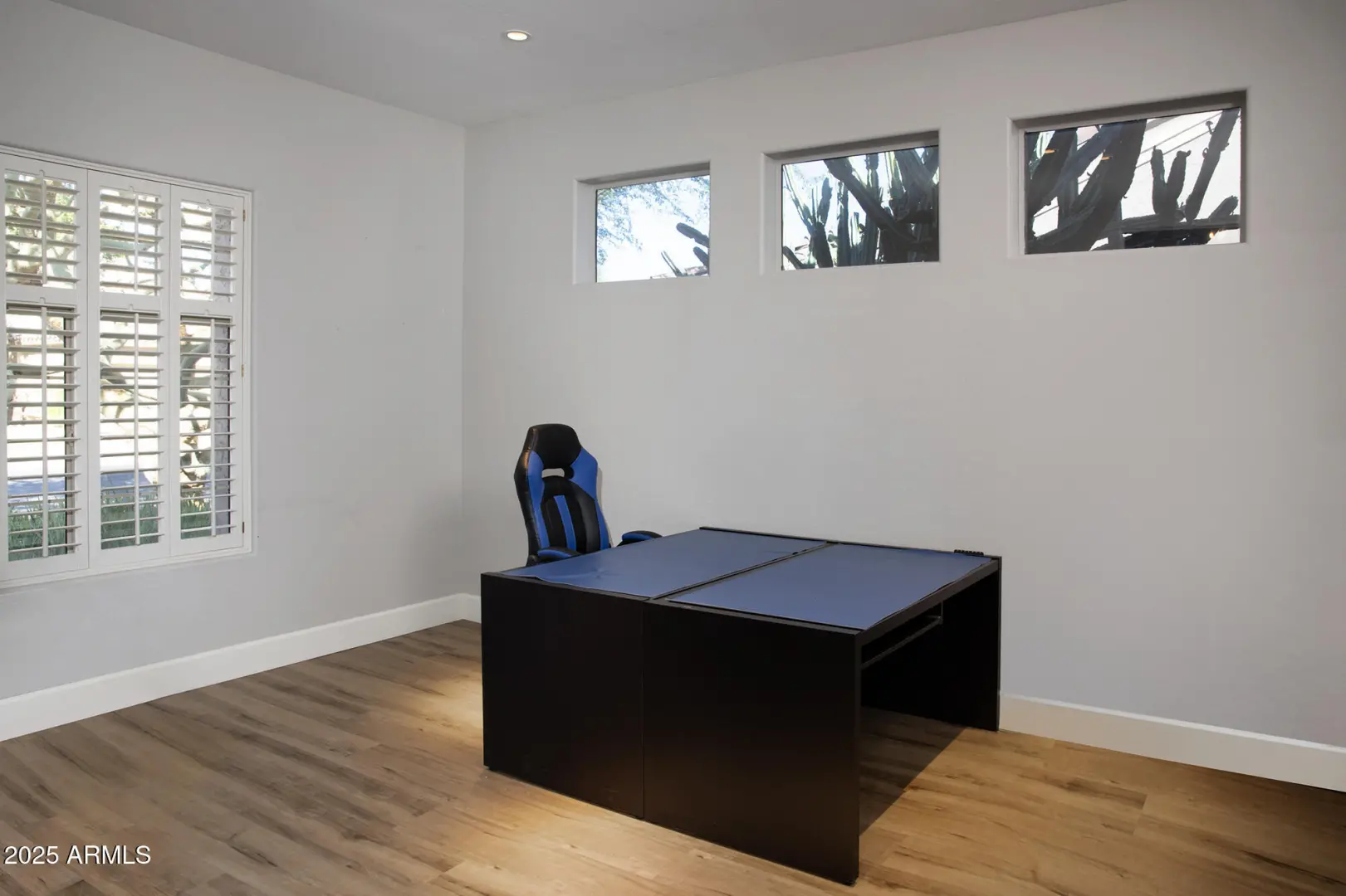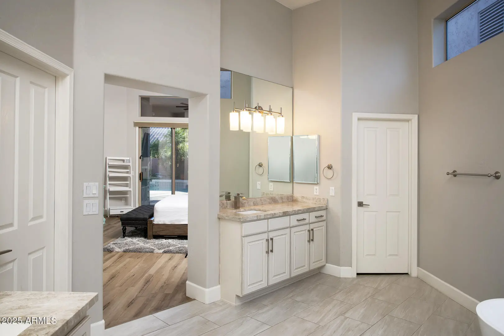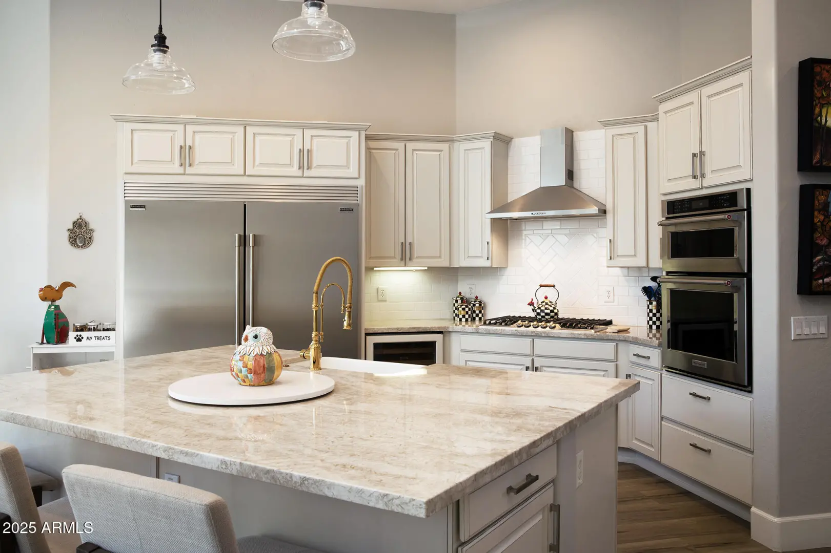 Located in the exclusive neighborhood of Churchill Downs of Triple Crown this home has been remodeled to an open floor plan with dramatic 12' flat ceilings from DR, Kitchen and Great room. The split floor plan includes 3 bedrooms plus a den/office or 4th bedroom. The spacious kitchen include stainless appliances, Subzero wine fridge with large island overlooking the great room w/fireplace.The Primary suite has a large bath with 2 closets. The south-facing backyard includes a pebble sheen play pool and built-in BBQ. Community features include community park, basketball, volleyball, playground & picnic area. Located near the 51, Mayo, Desert Ridge & Kierland.