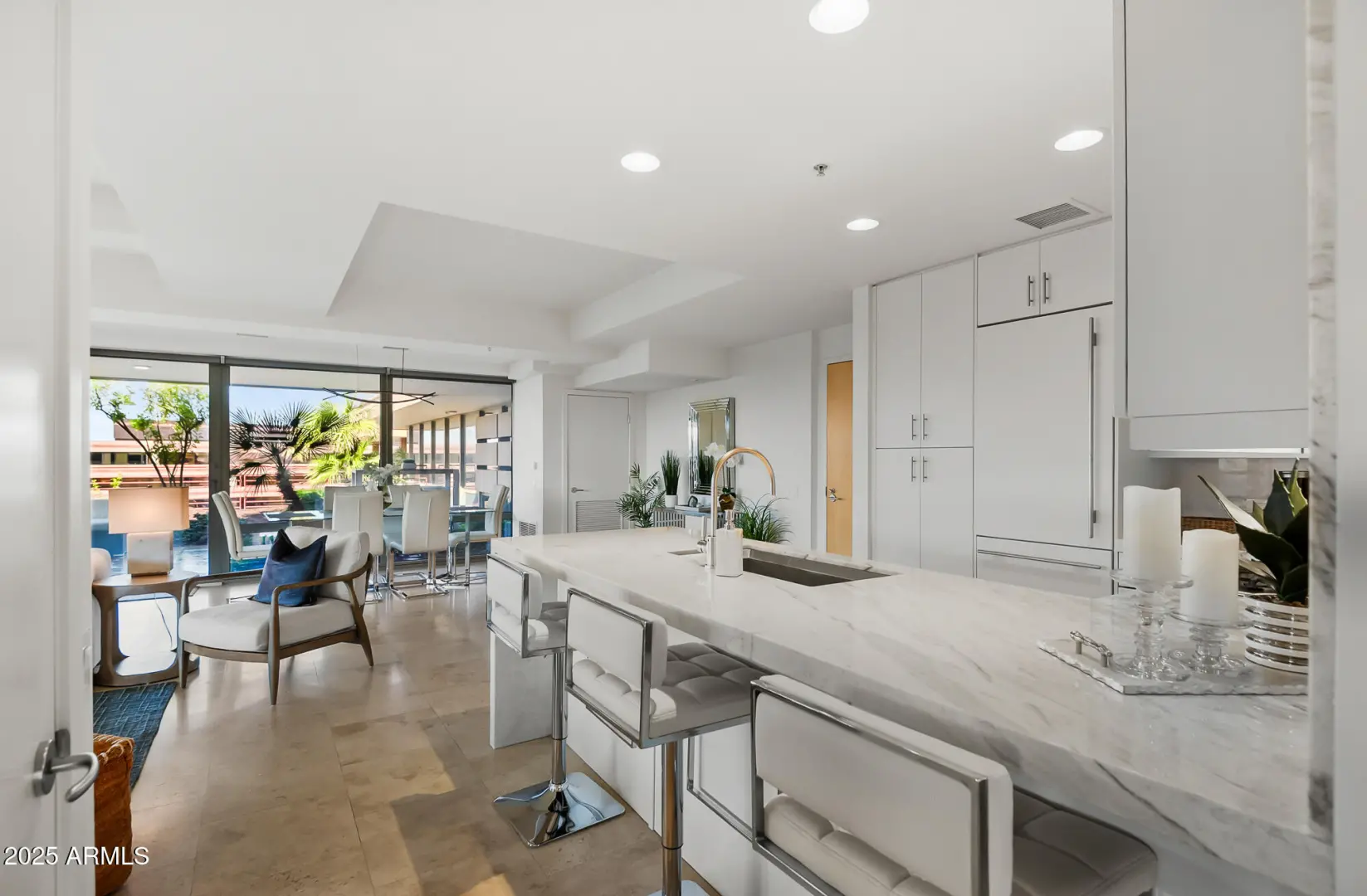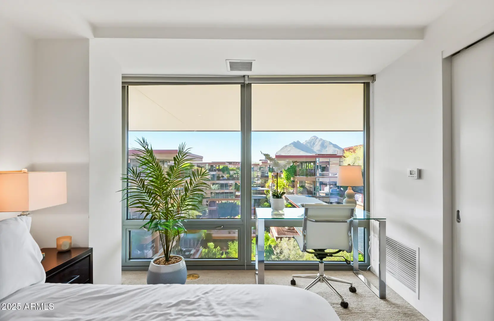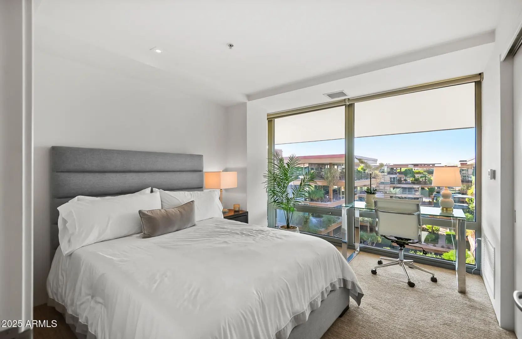 ***Optima Camelview Top Floor Penthouse*** Welcome to this absolutely spectacular 7th floor penthouse boasting breathtaking Camelback Mountain & community views. Featuring a massive fully private remodeled patio (one of the largest in the entire community). Experience elevated luxury in this professionally designed and fully furnished 2-bedroom, 2-bath Penthouse. Walls of floor-to-ceiling glass fill the home with natural light, while the open-concept layout and sophisticated finishes create a seamless blend of comfort and style. The remodeled gourmet kitchen features marble countertops, premium appliances, and sleek modern cabinetry, flowing effortlessly into the spacious living area and oversized balcony — perfect for entertaining or enjoying the stunning views.