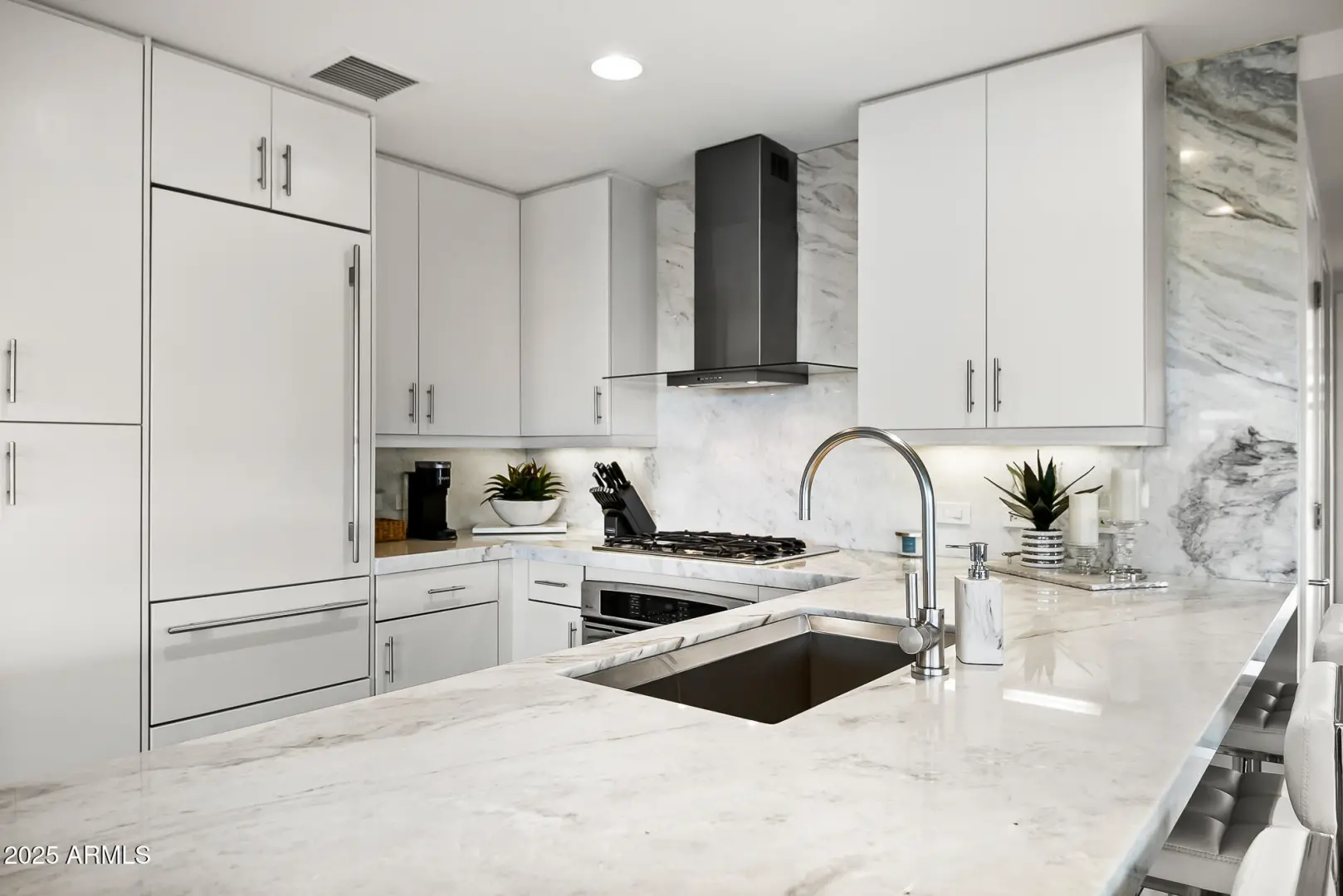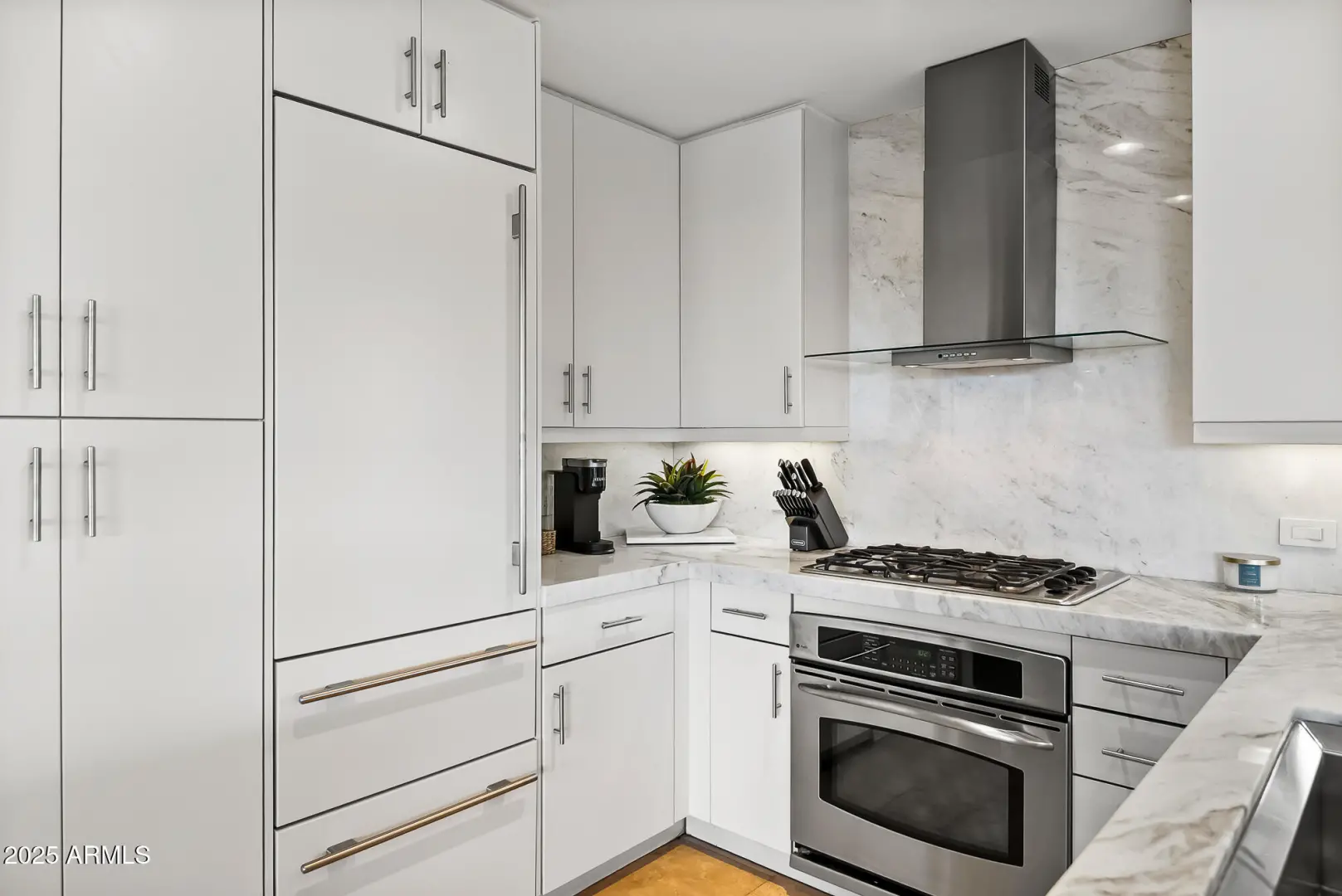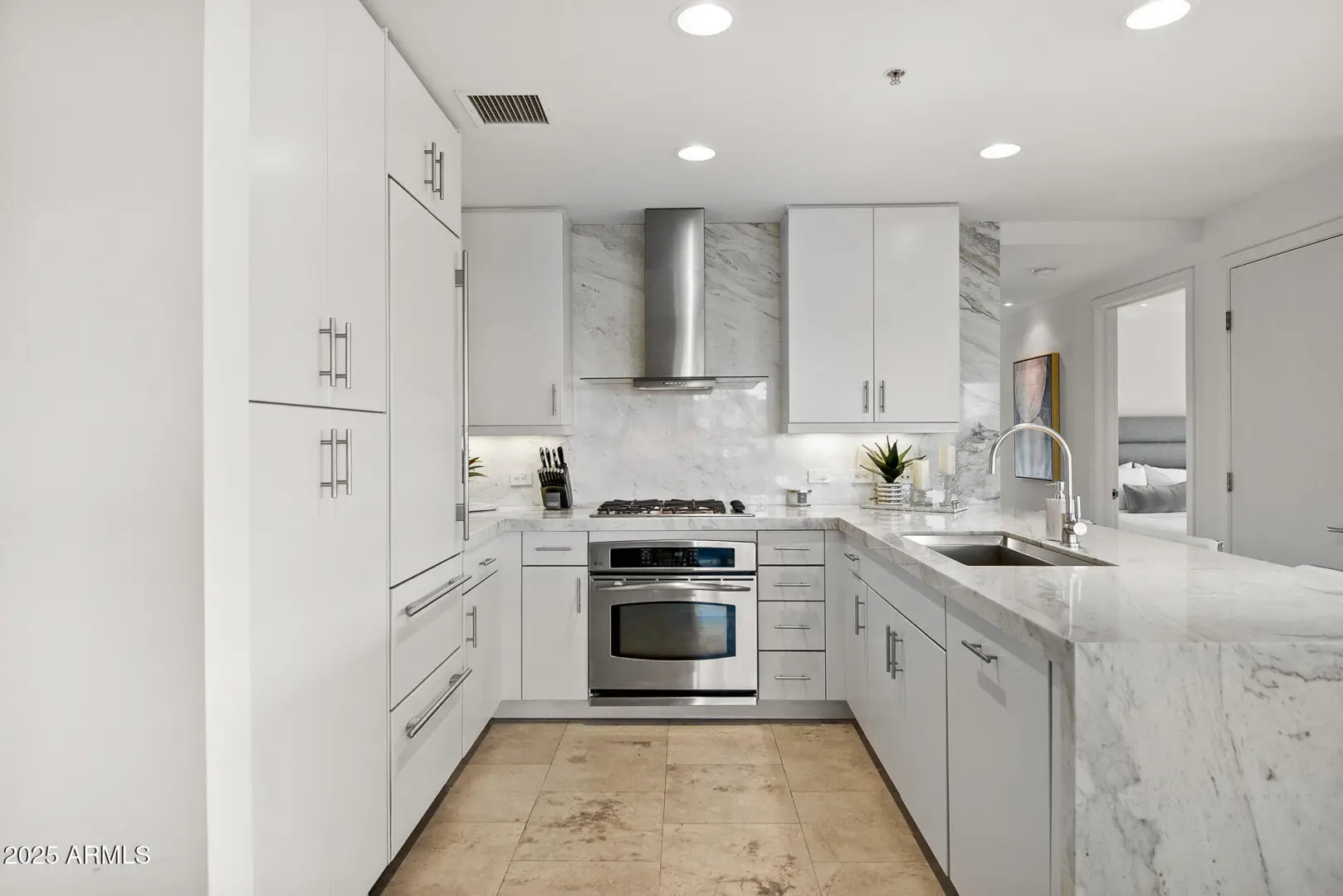 ***Optima Camelview Top Floor Penthouse*** Welcome to this absolutely spectacular 7th floor penthouse boasting breathtaking Camelback Mountain & community views. Featuring a massive fully private remodeled patio (one of the largest in the entire community). Experience elevated luxury in this professionally designed and fully furnished 2-bedroom, 2-bath Penthouse. Walls of floor-to-ceiling glass fill the home with natural light, while the open-concept layout and sophisticated finishes create a seamless blend of comfort and style. The remodeled gourmet kitchen features marble countertops, premium appliances, and sleek modern cabinetry, flowing effortlessly into the spacious living area and oversized balcony — perfect for entertaining or enjoying the stunning views.