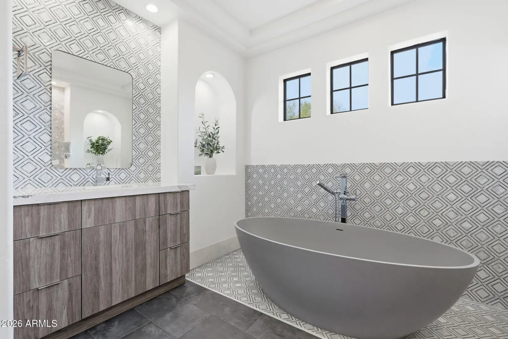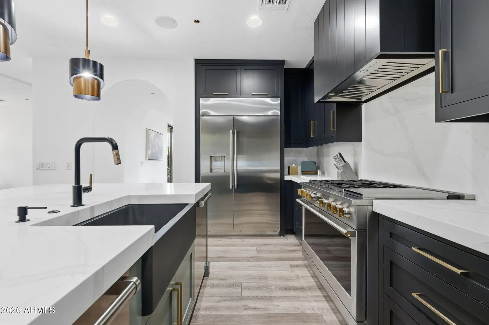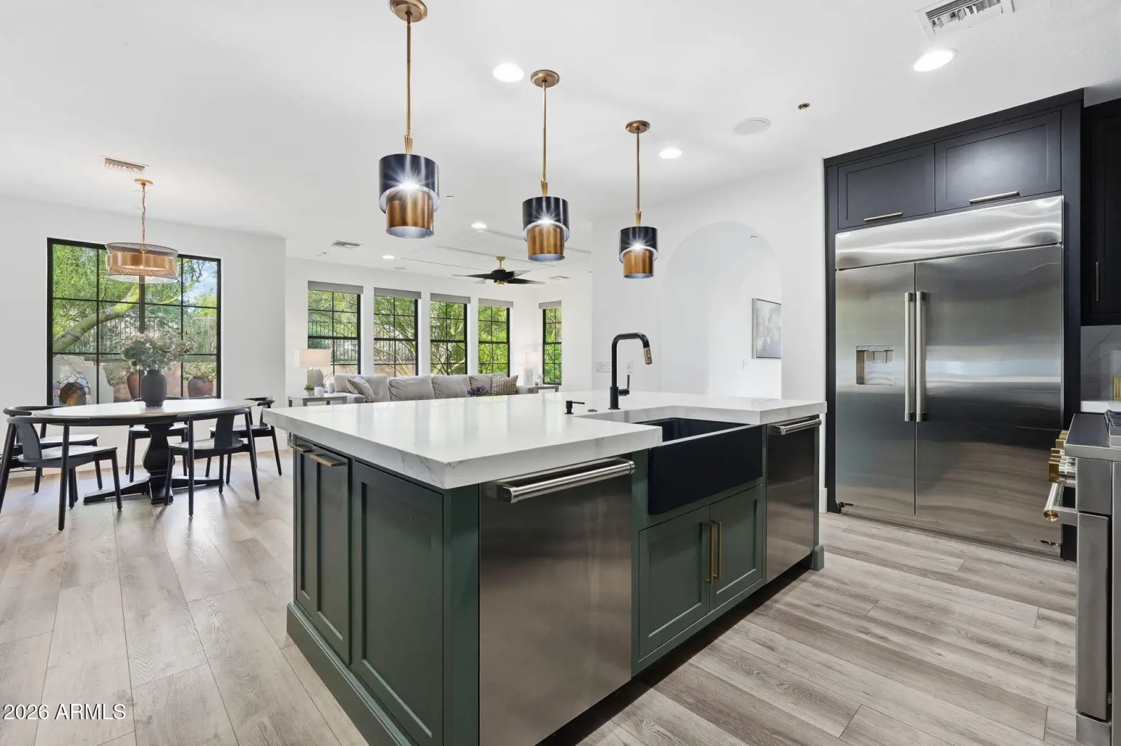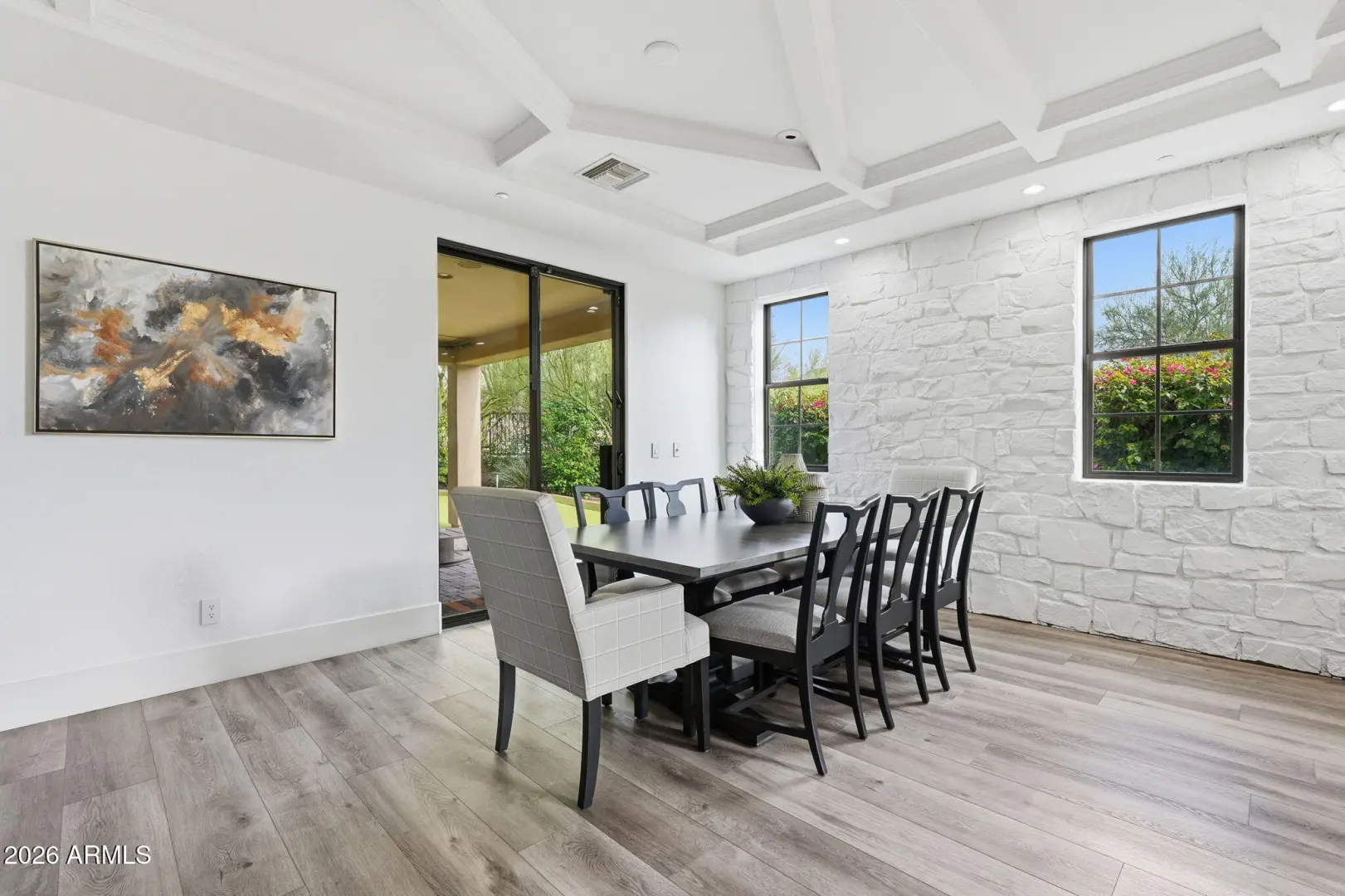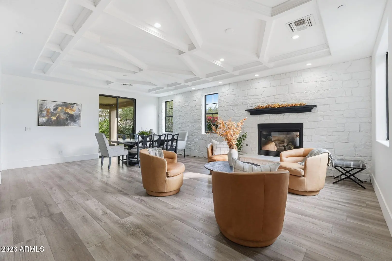 Welcome to this beautifully remodeled Toll Brother's home in the highly desirable, guard-gated community of Windgate Ranch. Perfectly positioned on a premium cul-de-sac lot backing to a natural wash, the home showcases breathtaking McDowell Mountain views and an exceptional blend of luxury and functionality. Designed for effortless indoor-outdoor living, the resort-style backyard features a play pool, multiple covered patios, a putting green, gas fireplace, and a convenient pool bath—ideal for both entertaining and everyday enjoyment. Inside, new flooring flows throughout expansive living spaces, including an oversized living room with fireplace, formal dining area, wet bar, and private office. The show-stopping chef's kitchen is a true centerpiece, appointed with custom cabinetry (MORE)